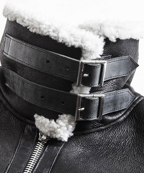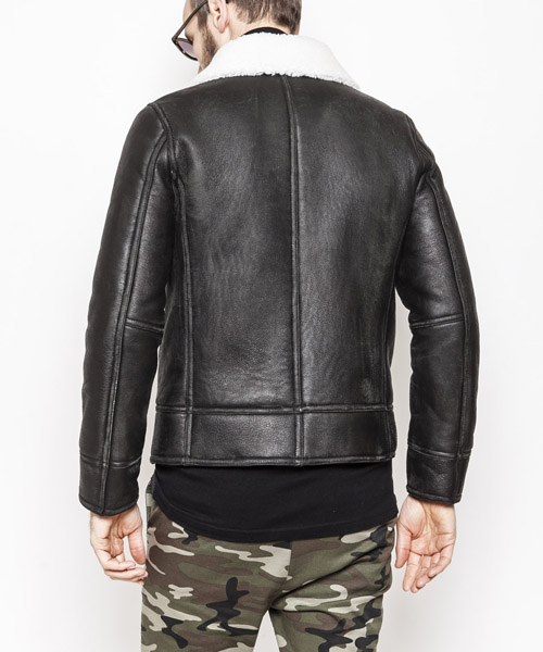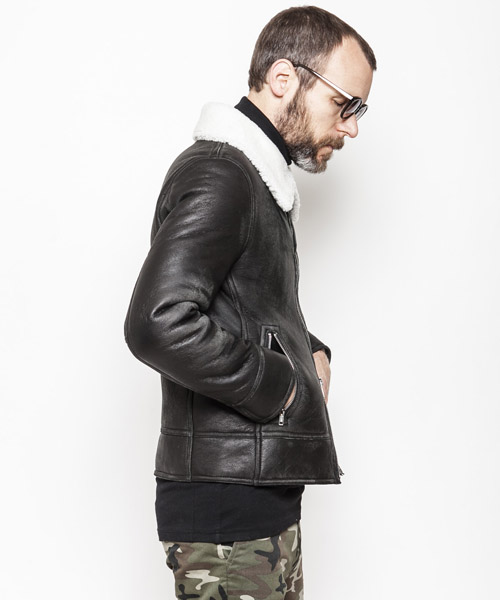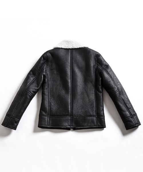 | Spec | 1934年に採用されたアメリカ陸軍航空隊(現在のアメリカ空軍)の寒冷地気候用フライトジャケット、クラシックなデザインのB-3タイプ。B-3ジャケットを元にシームテープ等のディティールをステッチで表現し、シンプルな装飾に修正。衿のベルト、フロントのテープにはブライドルレザーを贅沢に使用。ファスナーにはTALONファスナーを使用している。縫製後、職人による手作業で革の表面を削り出し、起毛させる事でアンティーク調のused加工を加えている。高い防寒性を誇るムートンジャケット。 |
