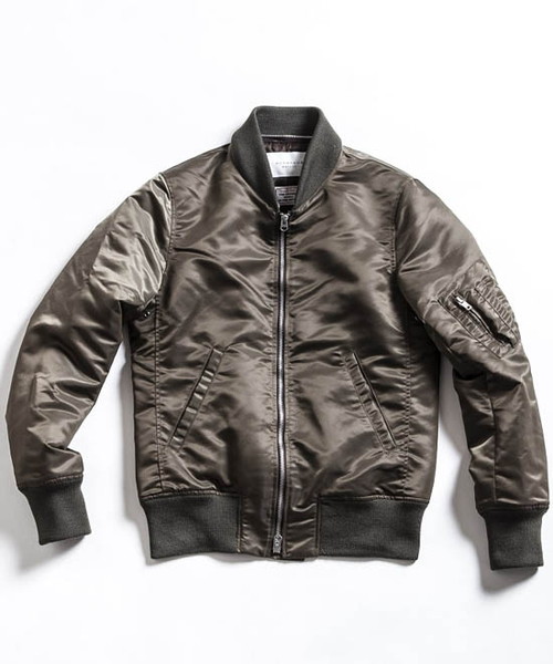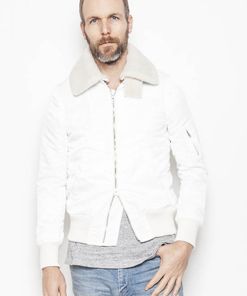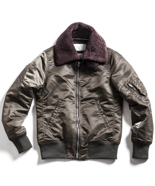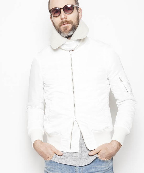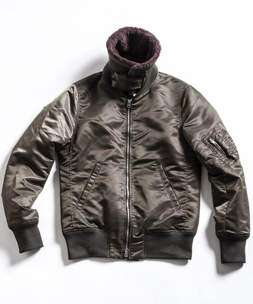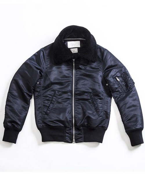 | Spec | 1944年に開発されたB-15フライトジャケット。朝鮮戦争時、マリリンモンローが兵士の慰問に訪れた際に着用していた事でも有名なモデル。表地にはMA-1に使用される高密度のナイロン生地を使用。袖には別注で編み立てたウールリブ、裏地には袖通りの良い上質なキュプラ生地を使用している。ファスナーにはTALONファスナーを採用。ファスナーにて取り外し可能なリアルムートンボア衿を配置。取り外すとウールリブ使用のMA-1,L-2Bタイプのような仕様で着用も可能となっている。全体に中綿を挟む事で防寒性を向上させた機能的な1着。 |
