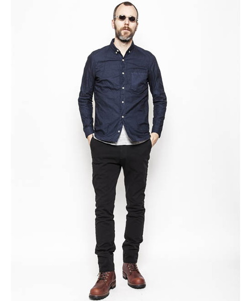 | Spec | 定番的にリリースしている肉厚でウエイトがありコシのあるオックスフォード生地を使用したB.Dシャツ。釦には10mm幅のACANTHUS刻印入りのオリジナル釦を使用。第3、第4釦には表裏にボタンが付き、おがみ合わせで釦を閉める事も可能。おがみ合わせにすることで、ラフな着こなしを楽しむ事ができる。肩には三角型の切り替えを追加。white色を含めすべて色を製品染めによって独特な色味と加工感を表現。着込む事で味わい深く変化する一枚。 |