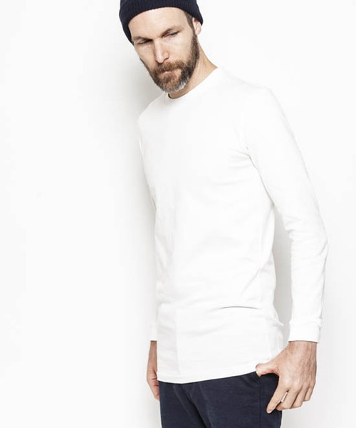 | Spec | 度詰め天竺を使用したロングスリーブのロング丈Tシャツ。ネック部分と袖にはストレッチ性に富んだ肌触りの良いフライス生地を使用している。後ろ身頃下部には腰~お尻部分を立体的にさせるダーツを取り入れて体に沿った立体的な形を形成。シンプルながらも細かな仕様に拘った上質なカットソーアイテム。 |