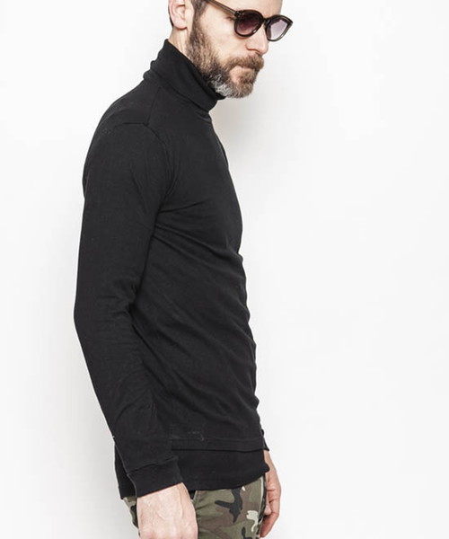 | Spec | 度詰め天竺を使用したロングスリーブのタートルネックTシャツ。タートルネック部分と袖にはストレッチ性に富んだ肌触りの良いフライス生地を使用している。後ろ身頃下部には腰~お尻部分を立体的にさせるダーツを取り入れて体に沿った立体的な形を形成。シンプルながらも細かな仕様に拘った上質なカットソーアイテム。 |