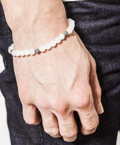 | Spec | 新たな世界を切り開く石と言われているカルサイト。その中でも、夏に合うような白い色を選び、気軽に付ける事の出来るシンプルなブレスレットを製作。16㎝と18㎝のタイプを用意。伸縮性のある糸を使用している為、着用し易い仕様となっている。 |