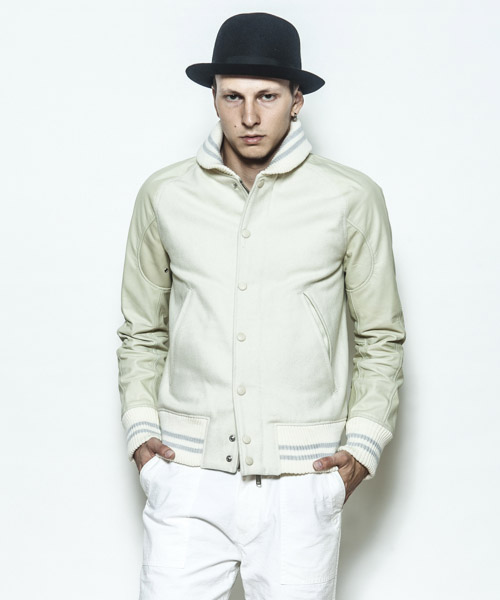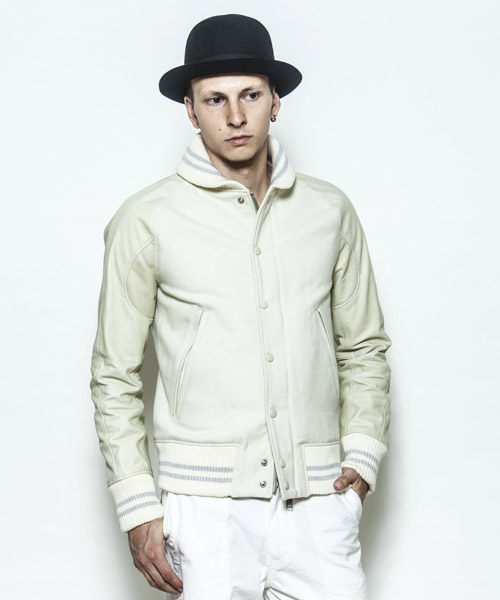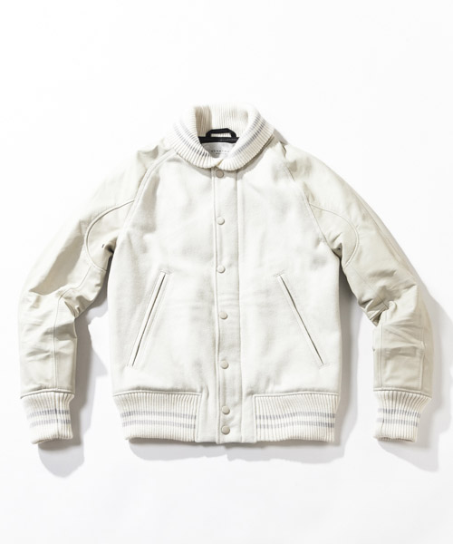 | Spec | 着用時に生まれる袖部分の自然なシワを表現した袖革の3D加工はACANTHUSオリジナルの加工。配色、ラインを別注した特注リブを使用。ファスナーにはTALON社製の物、ドット釦は身頃と同色系のレザーで包んだオリジナルくるみドット釦を使用している。black色のアームには職人による手作業によって下地の色を浮き出させる加工を施している。身頃裏には迷彩パターンの6/4クロス、袖裏には袖通りの良い上質なキュプラ生地を使用している。使用した素材、縫製、加工すべてに技術と拘りの詰まったアイテム。 |