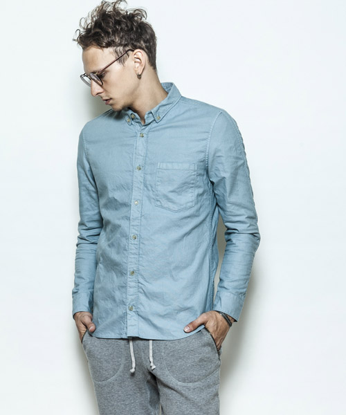 | Spec | 定番的にリリースしている肉厚でウエイトがありコシのあるオックスフォード生地を使用したB.Dシャツ。釦にはACANTHUS刻印入りのオリジナル釦を使用。第3、第4釦には表裏にボタンが付き、おがみ合わせで釦を閉める事も可能。おがみ合わせにすることで、よりラフな着こなしを楽しむ事ができる。肩には三角型の切り替えを追加。white色はボイルウォッシュ、sax&pink色は製品染めにより独特な色味を表現。着込む事で味わい深く変化する一枚。 |