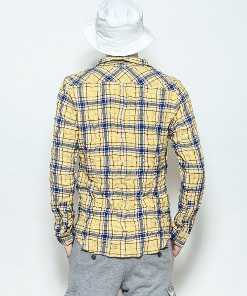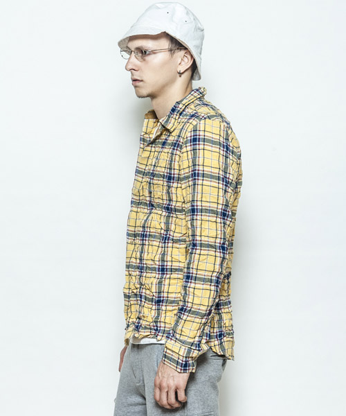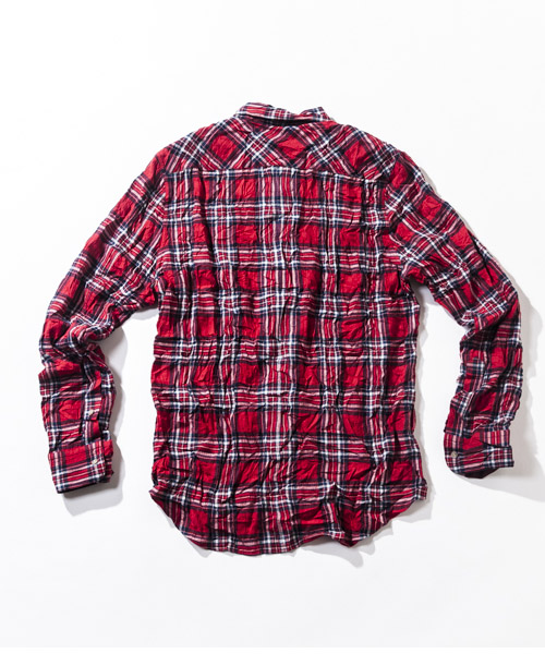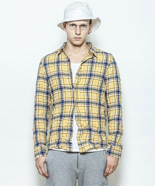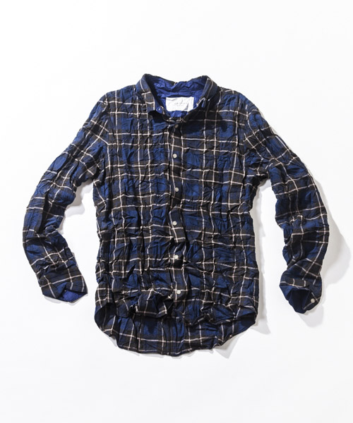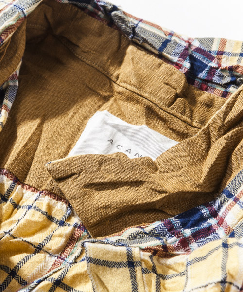 | Spec | 衿裏、ヨーク裏、カフス裏も肌の当たる部分には清涼感のある同色系の無地リネン生地にて切り替えている。釦にはACANTHUS刻印入りのオリジナル釦を使用。第3、第4釦には表裏にボタンが付き、おがみ合わせで釦を閉める事も可能。おがみ合わせにすることで、よりラフな着こなしを楽しむ事ができる。縫製後特殊なシワ加工で仕上げている。シーズンを問わずに活躍するオーセンティックな一枚。 |
