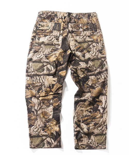 | Material | バックツイルコットン/リアルツリーリップストップコットン。White色、khaki色はオーガニックコットンのネック糸を使用した味わい深い無地のバックツイル生地。Camo色、blue camo色には薄手ながらハリ感も持ったリアルツリーカモ柄のリップストップ生地を使用している。 |