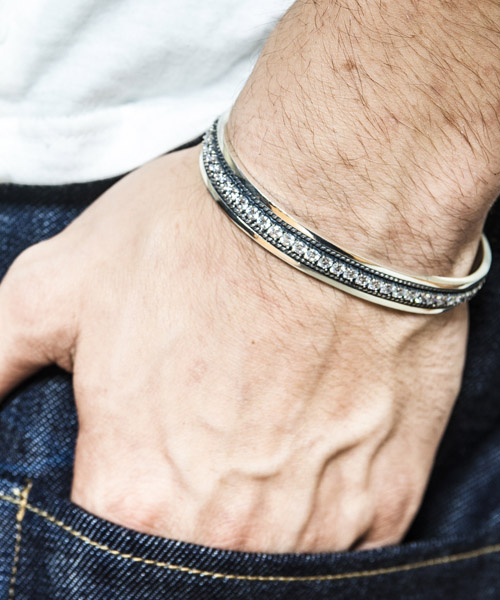 | Spec | メキシカンジュエリーをモチーフにしたシルバー925製のバングル。カラーはsilverと燻しを加えたantiqueの2色展開。こちらはスワロフスキーを大胆に装飾した1品。細かな装飾とシルバー特有の雰囲気がネイティブカルチャーを感じる事のできるアイテム。 |