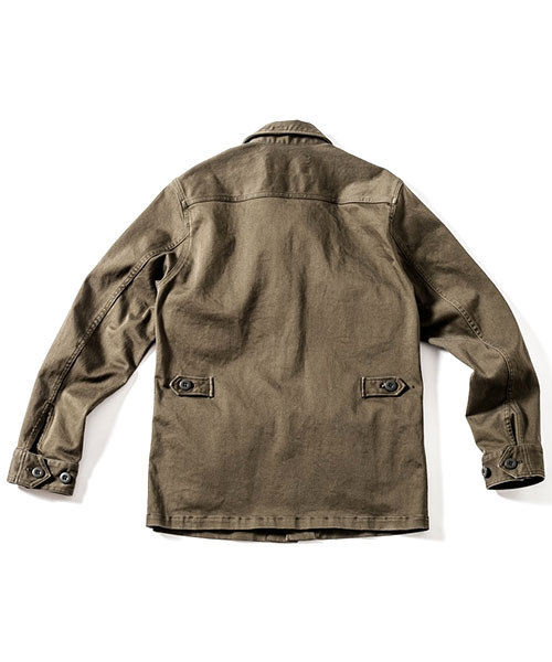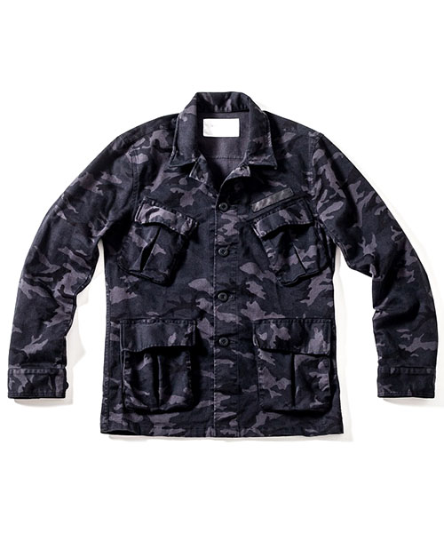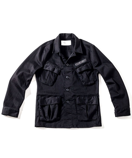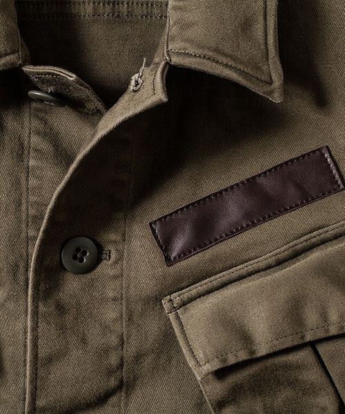 | spec | ベトナム戦争時に、米軍にて開発されたコンバットジャケット、通称ジャングルファティーグをベースに作製。左胸にはレザーテープパッチを配置。左胸ポケットには通常ペンポケットが配置される部分を省略し、ポケット中にiphoneサイズを収納可能な小ポケットを配置している。釦には強度の高いユリア樹脂釦を使用。縫製後、バイオボールウォッシュ加工を施す事で生地の風合いを向上させて仕上げた1枚。 |