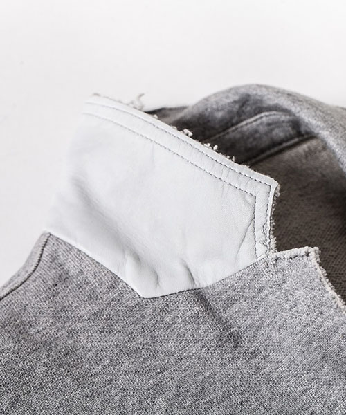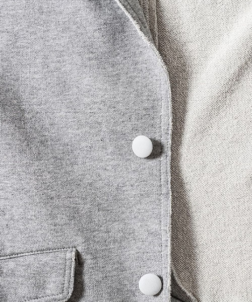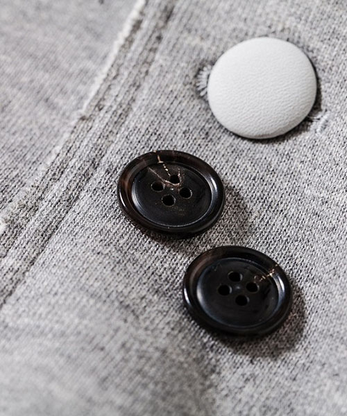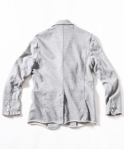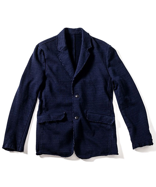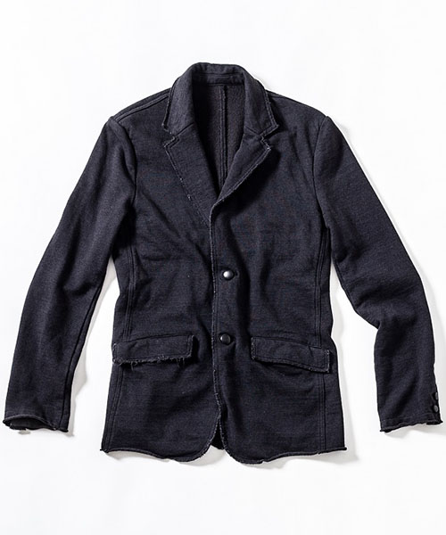 | spec | 2BテーラードJKT。釦にはオリジナルで作製したレザーくるみ釦を使用。取替え用として本水牛釦も付属する。Vintage調の生地を生かしたカットオフディティールを採用。袖口裏には杉綾テープを叩き付け、伸び止め機能も追加。上衿裏にはレザーパーツを配置。縫製後ワンウォッシュ加工を施している。 |