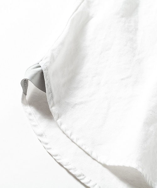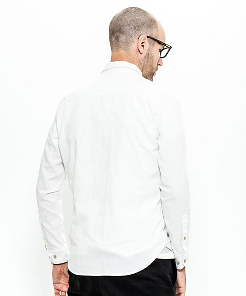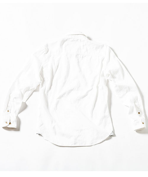 | spec | 定番的にリリースしているオックス生地を使用したB.Dシャツ。釦にはACANTHUS刻印入りのオリジナル釦を使用。肩には三角型の切り替えを追加。両脇裾にはレザーを使用したマチを配置。ワンウォッシュ加工を施す事で生地の風合いを向上。着込む事で味わい深く変化する一枚。 |