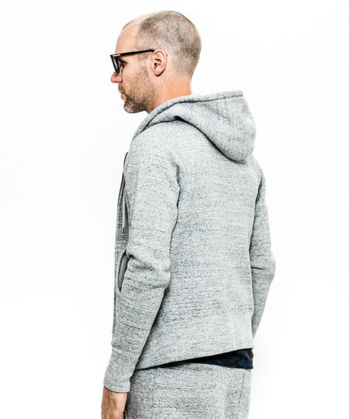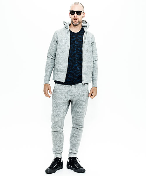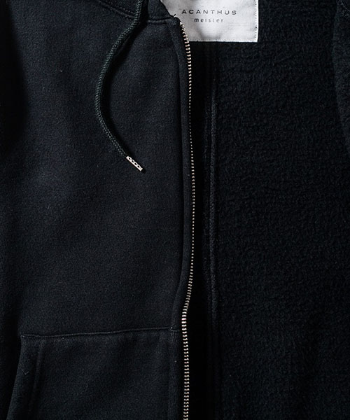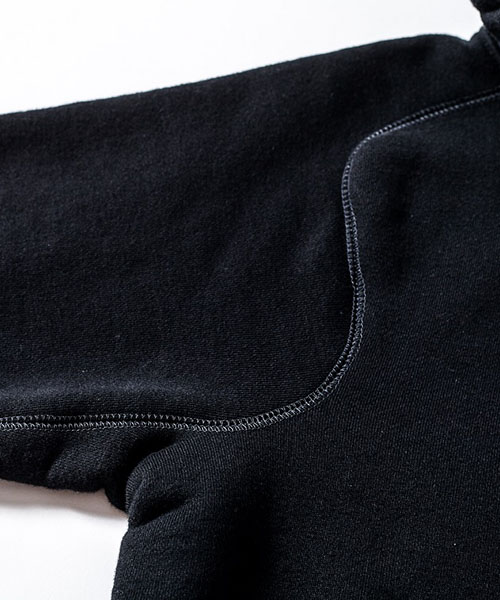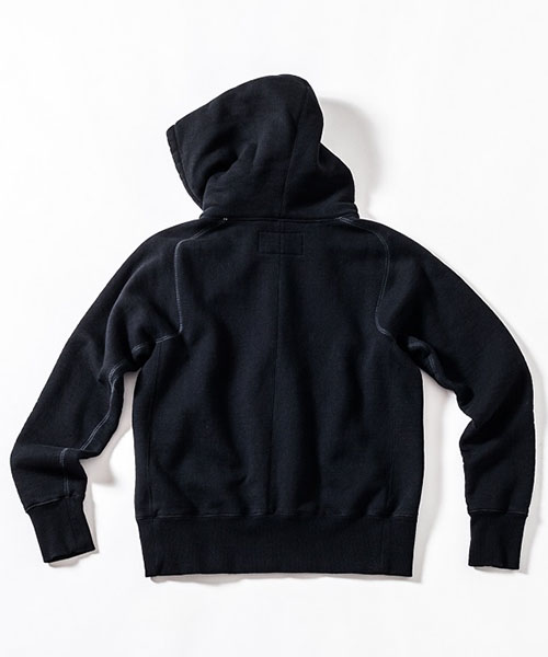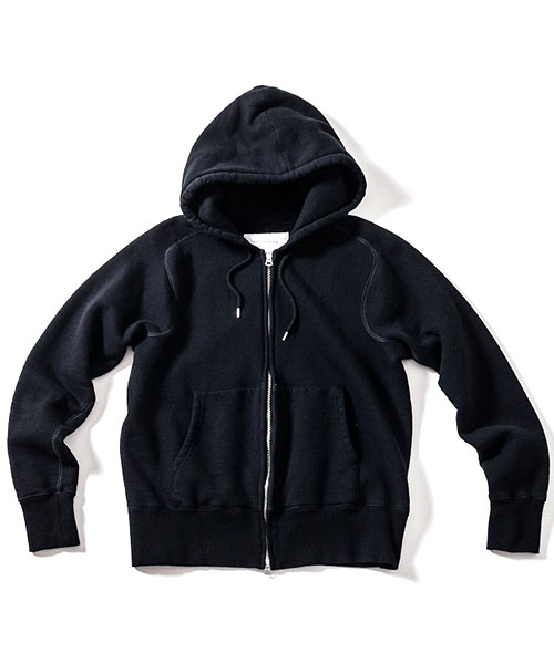 | spec | 度詰裏毛起毛を使用したフルジップフーディー。最大の特徴はアームスリーブ脇のマチ付き仕様の袖付け。軍隊の運動時に、腕を上げた際に裾が上がり、肌が見えないように開発されたと言われている通称フリーダムスリーブ。脇にマチを配置する事で肩、腕が動き易い仕様となっている。40年代~50年代のスウェットアイテムに見られるディティールだが、縫製コストのかかる仕様で徐々に姿を消していったと言われている。現在も技術の高い縫製者が必要な仕様。袖と裾には肌触りの良いフライス生地を使用。ヴィンテージディティールに合わせ、ファスナーにはYKK universalファスナーを使用。ワンウォッシュ加工仕上げ。上質な裏毛生地と、ヴィンテージデティールを現代的なシルエットで仕上げた1着。 |