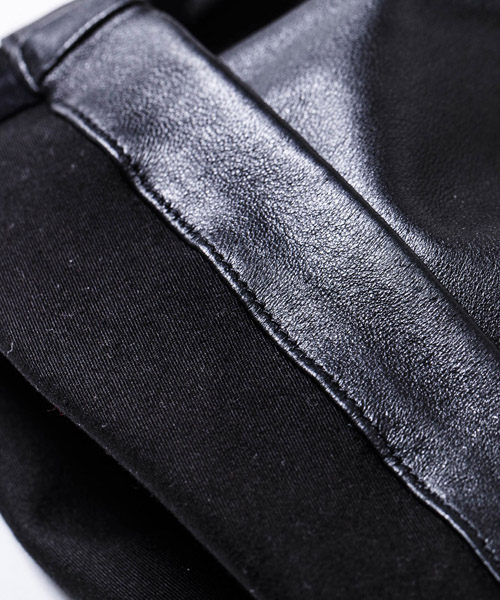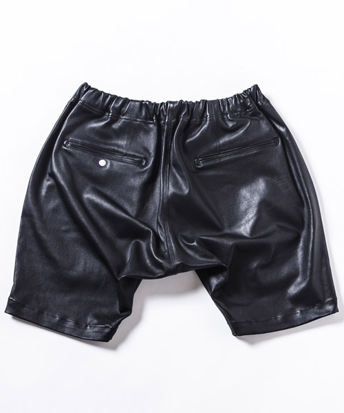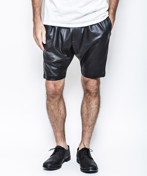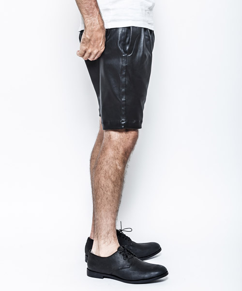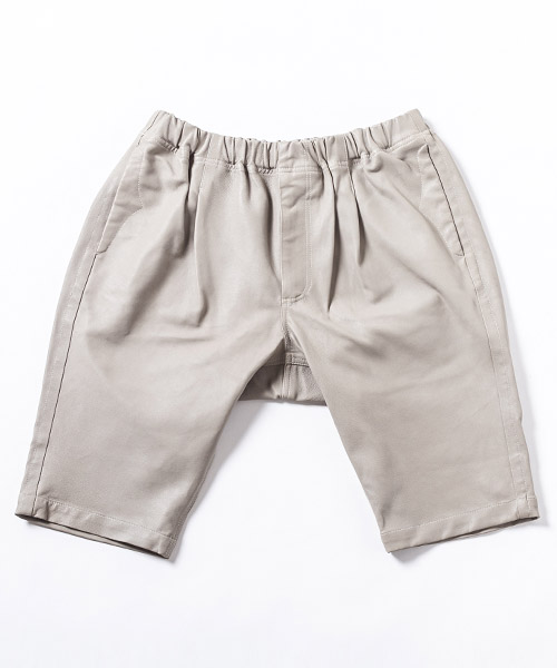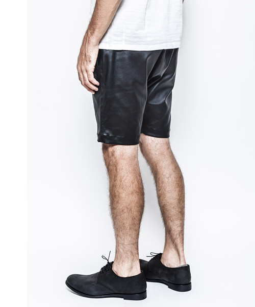 | spec | ウエストがゴム仕様のイージーパンツタイプのショーツ。ストレッチレザーを使用し、一枚仕立てのリラックス感のある仕様となっている。ウエストはゴムと紐で調節可能。TALONファスナーを配置し、前明き仕様となっている。 |