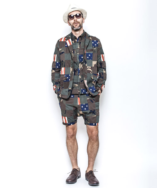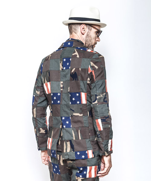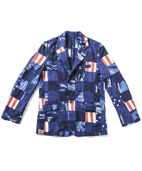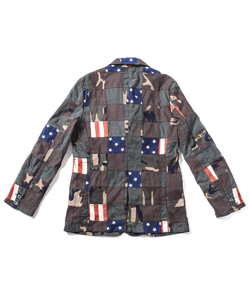 | spec | コットン製のオリジナルパッチワーク生地を使用した2釦仕様のテーラードジャケット。一枚仕立てで、肩パッド等の入らないライトな仕様。裏地縫い代はパイピング始末。釦にはvintage感の有るユリア樹脂性釦を使用。肩にはACANTHUSのアイコンでもあるハシゴステッチを施している。縫製後、製品染めを施す事で全体の色味を引き締め、生地の風合いを向上させている。 |
