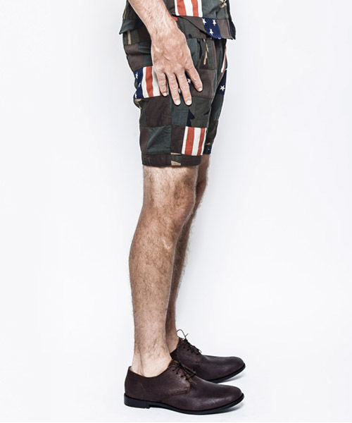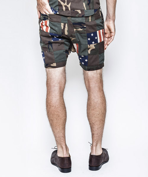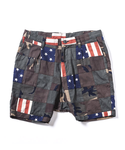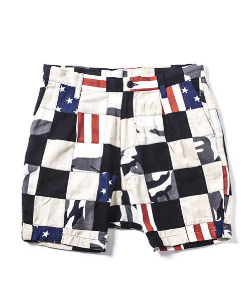 | spec | コットン製のオリジナルパッチワーク生地を使用したショートパンツ。フロントにワンタックを取ったクラシックなデザイン。フロントはTALONファスナーを使用し、明き仕様となっている。股には運動量を確保する為の機能的浅めのマチを配置。釦にはvintage感の有るユリア樹脂性釦を使用。縫製後、製品染めを施す事で全体の色味を引き締め、生地の風合いを向上させている。 |