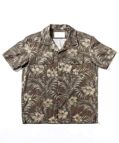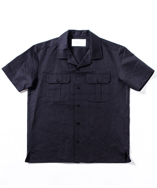 | spec | ミリタリーデザインの開襟シャツ。身頃の分量を十分に取ったリラックスシルエット。胸にはタック入りのポケット、後ろ身頃にはアーチを描く切り替えを配置。両脇はスリット仕様となっている。釦にはvintage感の有るユリア樹脂性釦を使用。上質な素材を生かしたシルエットで、リゾート感のある1着。 |