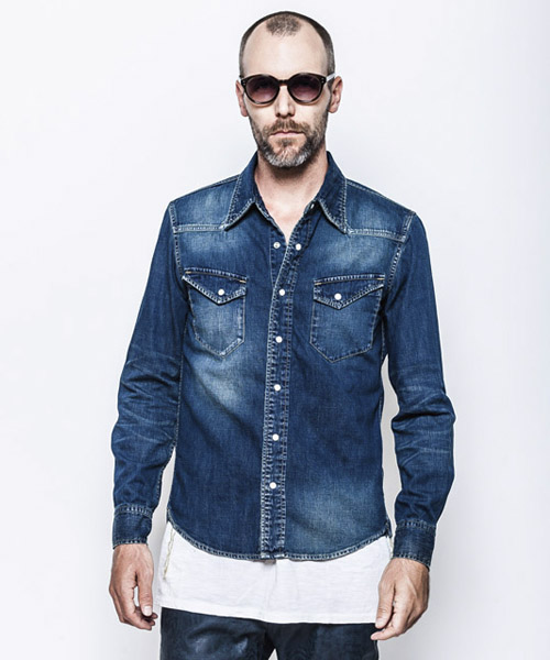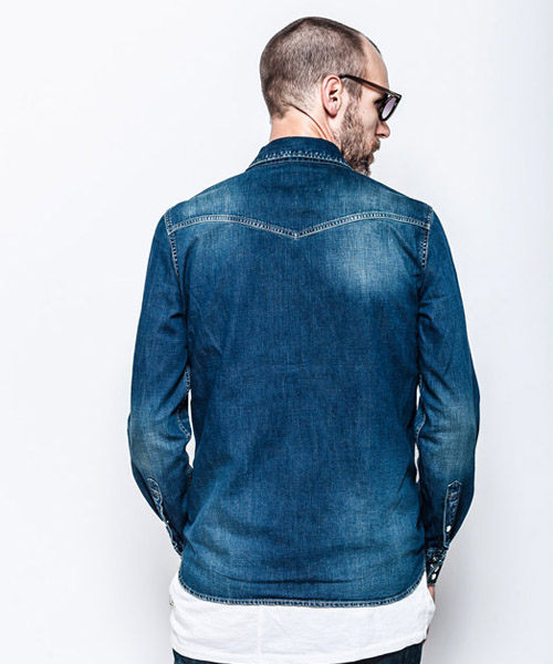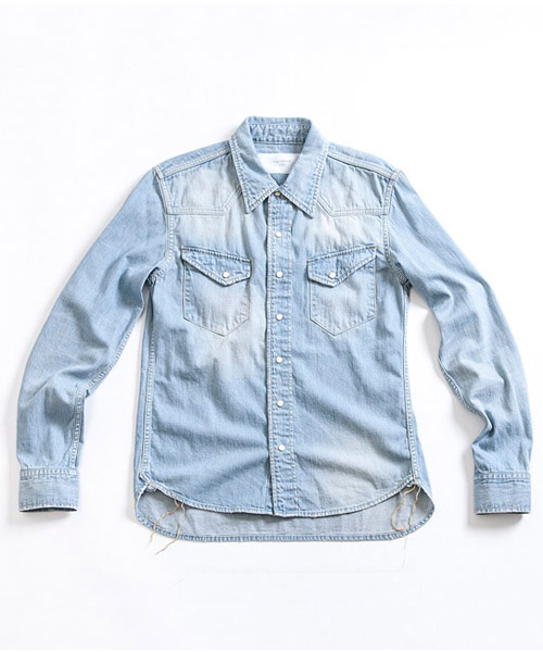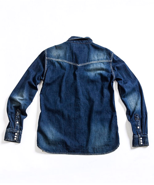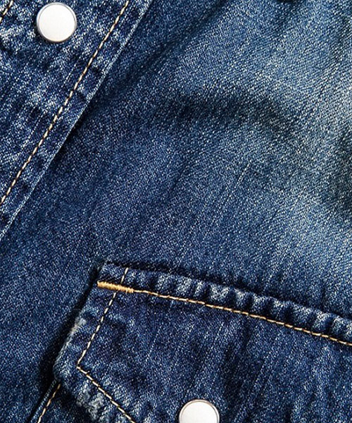 | spec | 8ozのデニムを使用したウエスタンシャツ。チェーンステッチの仕様に加え、細部によって異なる番手、色の糸で縫製をする事で、加工による表情を変化させている。裾脇にはチェーンステッチを流した仕様。釦にはパールタイプのベルナップ釦を使用している。世界トップクラスのデニム加工技術を有する岡山児島で生地の手配から縫製、ダメージ加工まで施し、リアルヴィンテージを追及した一枚。 |