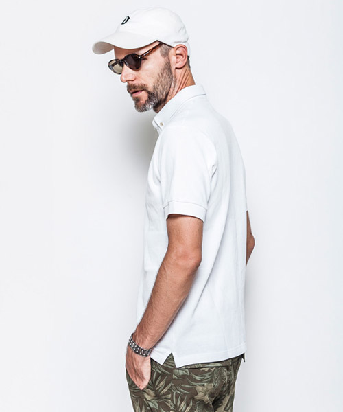 | spec | B.D仕様のポロシャツ。深めの前明きで、釦には10mm幅の小ぶりのACANTHUS刻印入りのオリジナル釦を使用。袖口には編み立てのリブ仕様。胸にはブランド名であるACANTHUS(地中海地方産ハアザミ 属の植物)の形をモチーフにしたアイコンを刺繍している。上質な生地で仕上げたベーシックな1枚。 |
