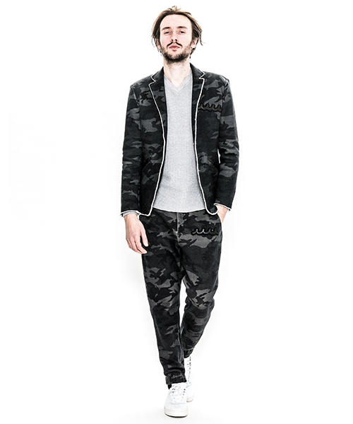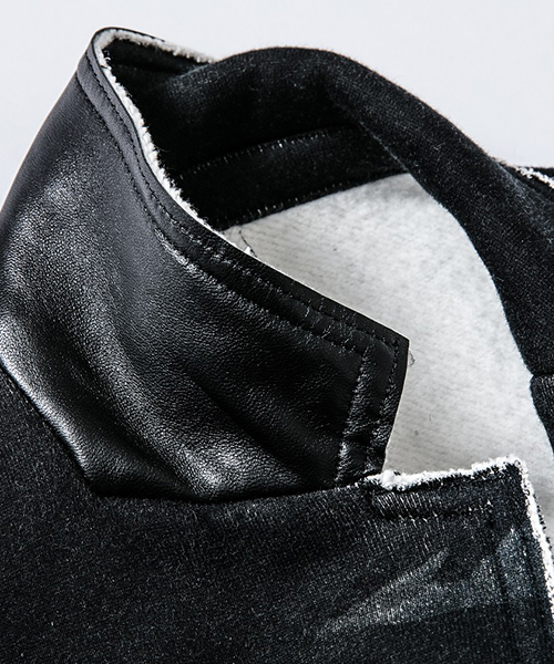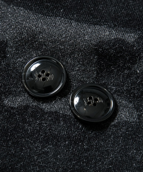 | spec | mutaとのコラボレーションコレクションの2BテーラードJKT。胸には贅沢にレザーで作製したmutaロゴワッペンを配置。釦にはオリジナルで作製したレザーくるみ釦を使用。取替え用として本水牛釦も付属する。裏毛生地を生かしたカットオフディティールを採用。上衿裏、脇ポケット口にはラムレザーを配置。縫製後ワンウォッシュ加工を施して仕上げている。 |