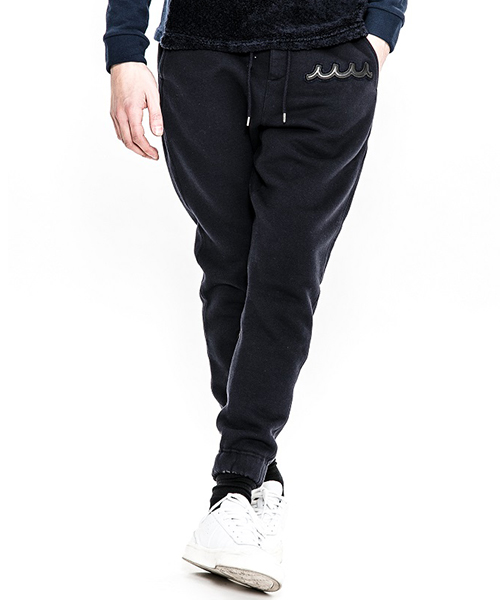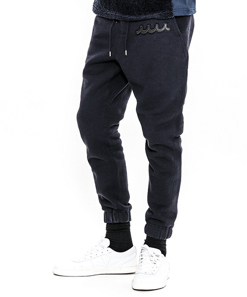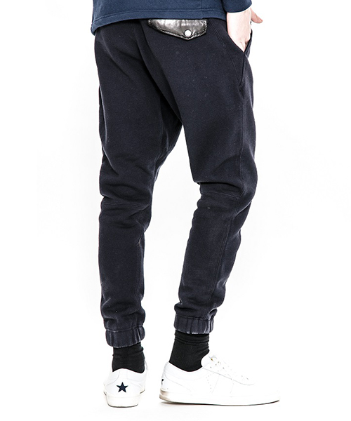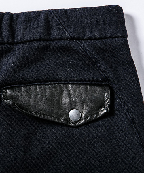 | spec | mutaとのコラボレーションコレクションのスウェットパンツ。左前には贅沢にレザーで作製したmutaロゴワッペンを配置。ウエスト、裾は平ゴム仕様。股にはマチを配置し動き易さを考慮したディティール。バックにはラムレザーを使用したフラップ付きポケットを配置。ワンウォッシュ加工仕上げ。腰回りはゆとりを持たせ、裾に向かって綺麗にテーパードさせたシルエット。保温性の高い上質な起毛裏毛で仕上げたリラックス感のある1本。 |