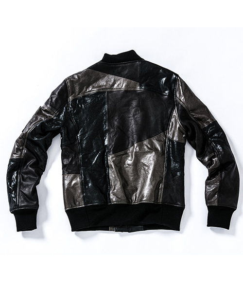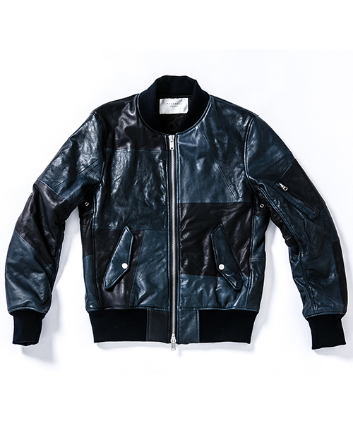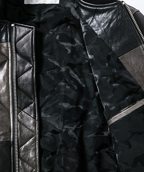 | spec | 1950年代初頭に、B-15型フライトジャケットの後継としてアメリカ空軍によって開発されたMA-1型フライトジャケットをベースに作製。身頃裏には肉厚なコットン、ナイロンの迷彩ジャガード6/4クロス、袖には肌滑りの良いキュプラ素材、袋布には起毛コットン生地を使用。ファスナーにはTALON社製を使用。全体に中綿を挟み込む事によって保温性を高めている。パッカリング縫製を施した袖仕様を採用しMA-1のディティールを革にて再現。 |