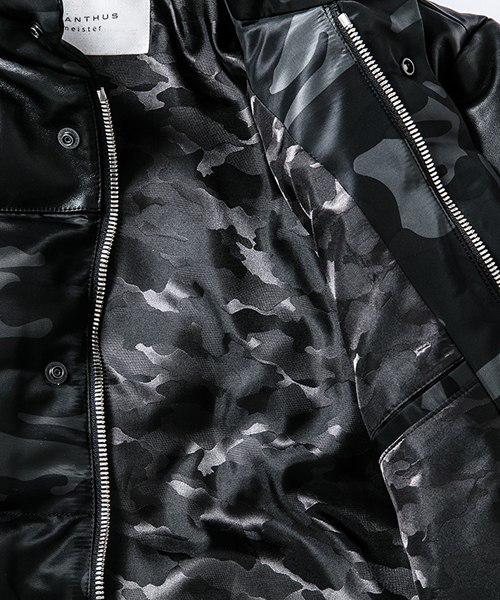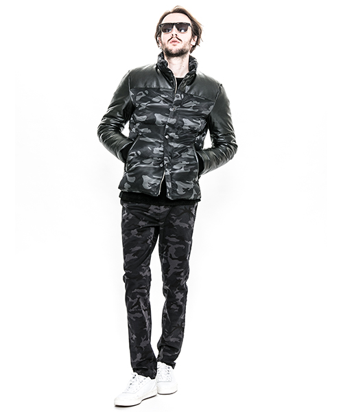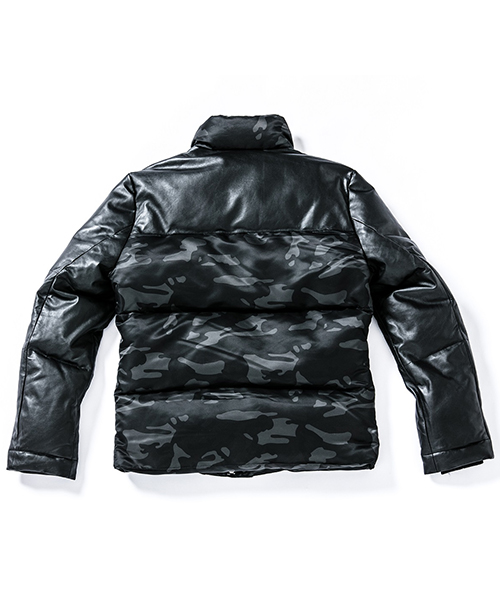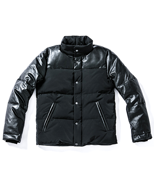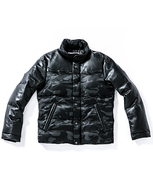 | spec | ヨーク、袖、脇ポケットにクロムなめしにて仕上げたラムレザーを使用したダウンジャケット。ダウン80,フェザー20%の配合で適度にボリューム感を出したダウン分量にて仕上げている。身頃裏にはポリエステルの迷彩ジャガード素材、袖には肌滑りの良いキュプラ素材、袋布には起毛コットン生地を使用。ファスナーには無地のYKKファスナーを採用。フロントはファスナー+ドット釦、袖口は内リブを配置し防寒性の高い仕様となっている。上質な素材を、シンプルに仕上げたダウンジャケット。 |