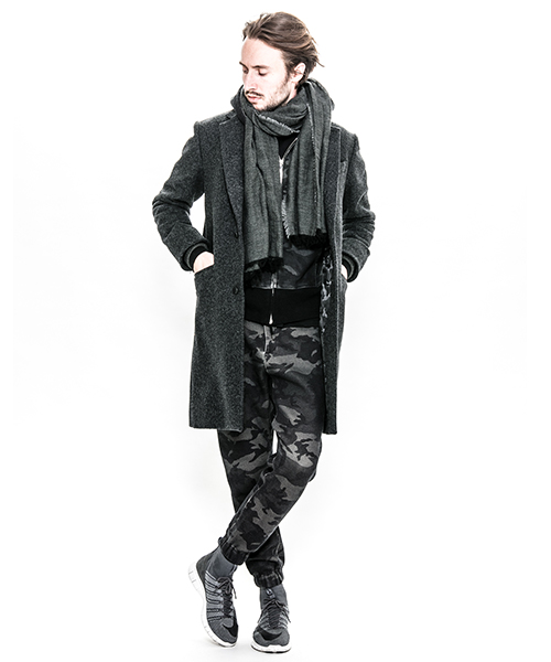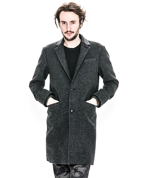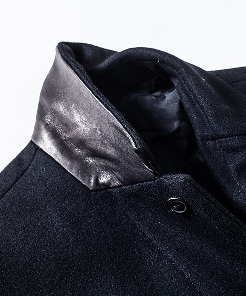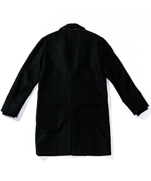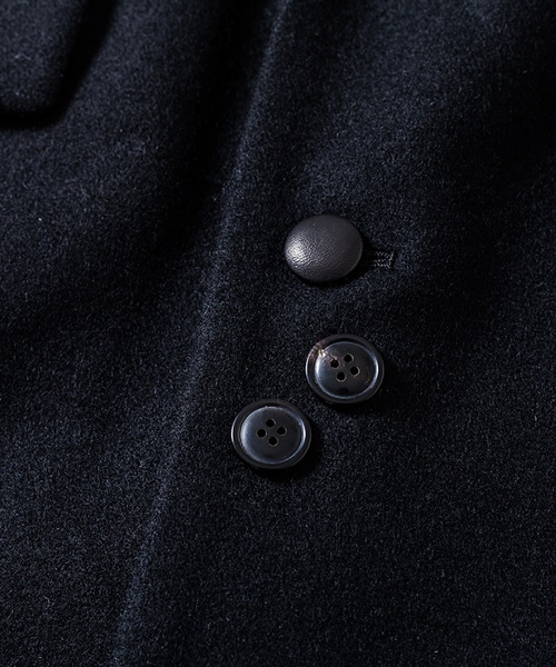 | spec | シルエットの美しいチェスターコートを保温性の高い上質なメルトン生地で仕上げた1着。肉厚なコットン、ナイロンの迷彩ジャガード6/4クロス、袖には肌滑りの良いキュプラ素材、袋布には起毛コットン生地を使用。袖口には内リブを配置。上襟裏にはカウレザーを配置。釦にはオリジナルで作製したレザーくるみ釦を使用。取替え用として本水牛釦も付属する。ラフな着心地を重視した肩パッド無しの仕様で、綺麗なシルエットに仕上げた1着。 |