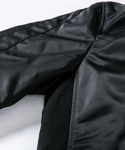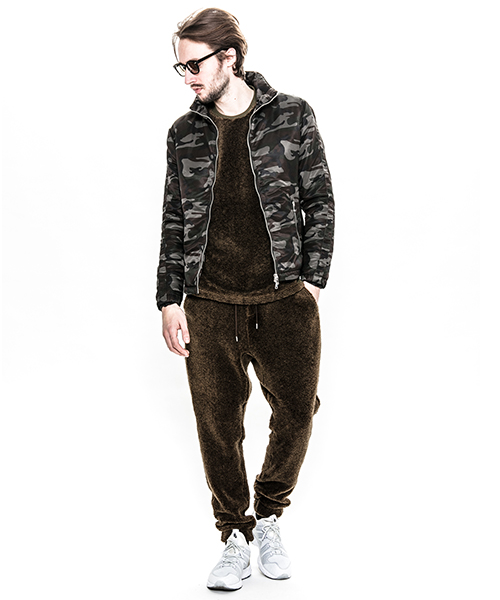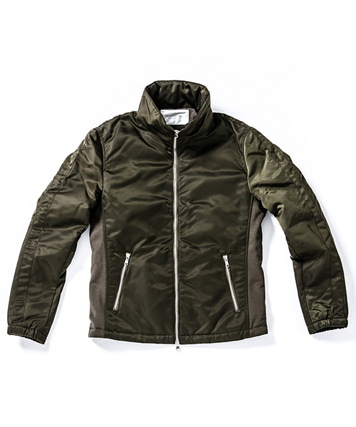 | spec | black&khakiにはLIMONTA NYLON、camoには Antique nylon twilを使用した中綿入りトラックJKT。ファスナーには高品質なYKK EXCELLAファスナーを採用。身頃裏、袋布には起毛コットン、袖には肌滑りの良いキュプラ素材を使用。脇には着心地を向上させる、ストレッチ性の高いジャージ素材にて切り替えを追加。裾巾はドローコードにて調節可能。 |