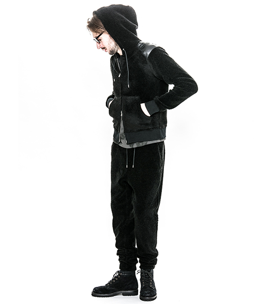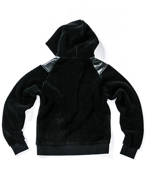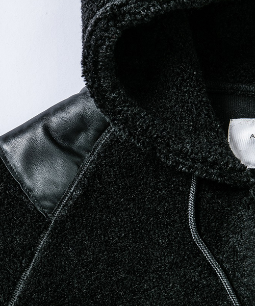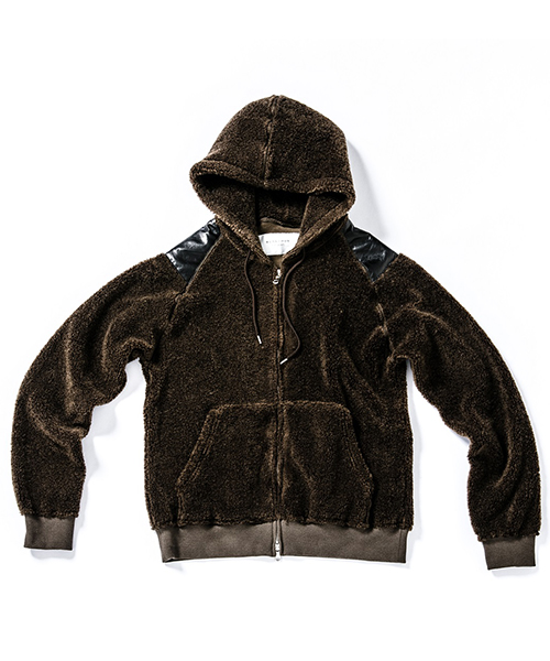 | spec | ラグラン仕様で肩にはラムレザーパーツを配置。両脇にはポケットを配置。フードは大きめに設定し、ドローコード仕様。ファスナーには高品質なYKK EXCELLAファスナーを採用。生地の風合いを生かしたワンウォッシュ加工にて仕上げている。 |