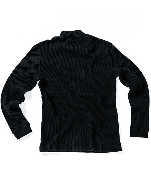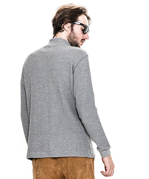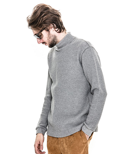 | spec | 今シーズンは以前に増してヘビーで、保温性に優れたサーマル生地を使用。セットイン仕様で旬なモックネックタイプ。裾はスクエア仕様。袖口はリブ仕様をなっている。襟は同生地で統一感を演出。縫製後ワンウォッシュ加工にて仕上げた上品な1枚。 |