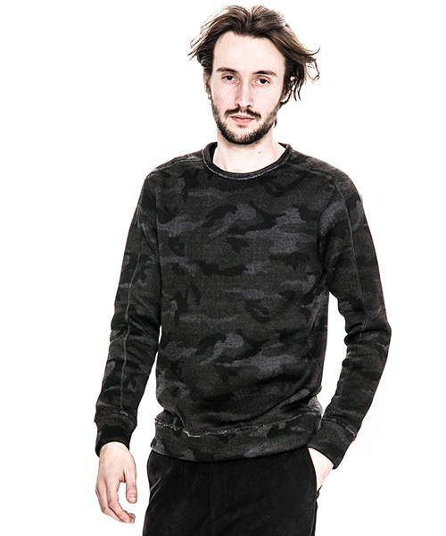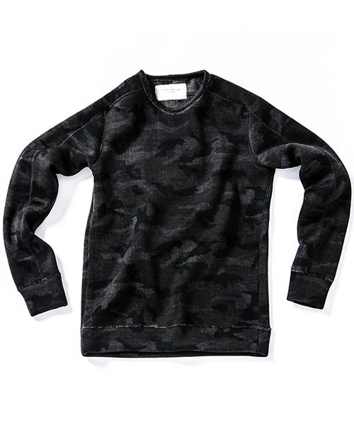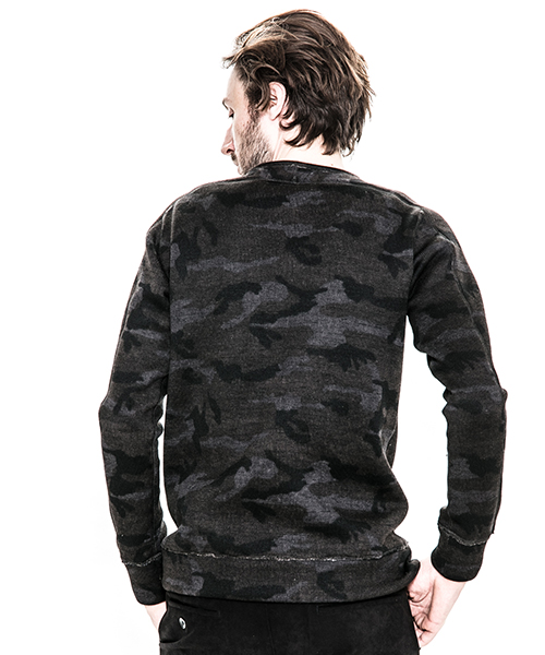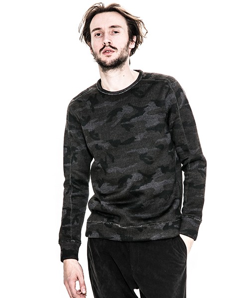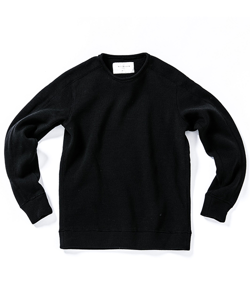 | spec | プルオーバーのスウェットタイプ。肩から袖にかけて大胆に入る切り替えが特徴。襟、裾、袖のリブ切り替え部分は裁ち切り仕様。見た目はニットセーター、着心地はスウェットのような新しい感覚のニットアイテム。 |