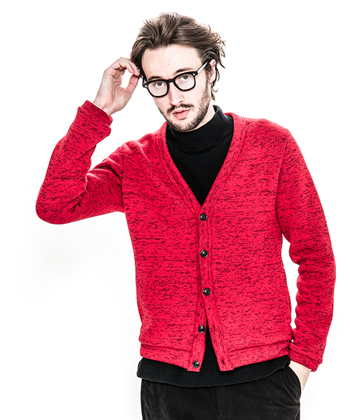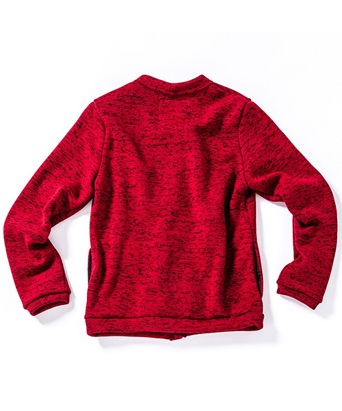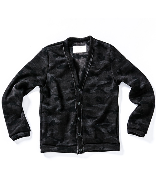| spec | フロントは釦明きで、両脇のシームにはポケットを配置したカーディガンタイプ。袖、裾は同生地にてリブ切り替え仕様。前端~襟の切り替え部分は裁ち切り仕様となっている。見た目はニットセーター、着心地はスウェットのような新しい感覚のニットアイテム。 |