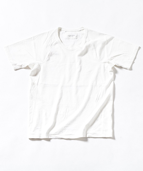 | spec | 最大の特徴はアームスリーブ脇のマチ付き仕様の袖付け。軍隊の運動時に、腕を上げた際に裾が上がり、肌が見えないように開発されたと言われている通称フリーダムスリーブ。脇にマチを配置する事で肩、腕が動き易い仕様となっている。40年代~50年代のスウェットアイテムに見られるディティールだが、縫製コストのかかる仕様で徐々に姿を消していったと言われている。現在も技術の高い縫製者が必要な仕様。縫製後ワンウォッシュ加工にて仕上げた1枚。 |
