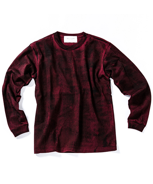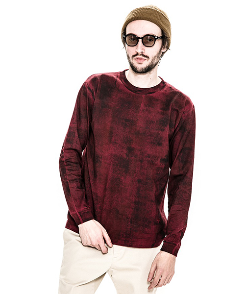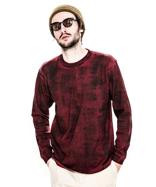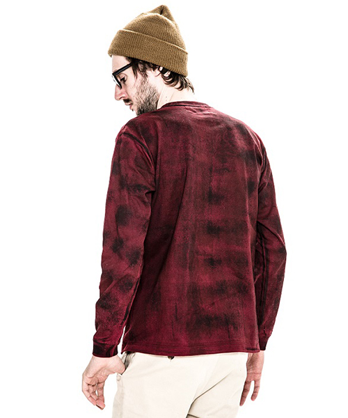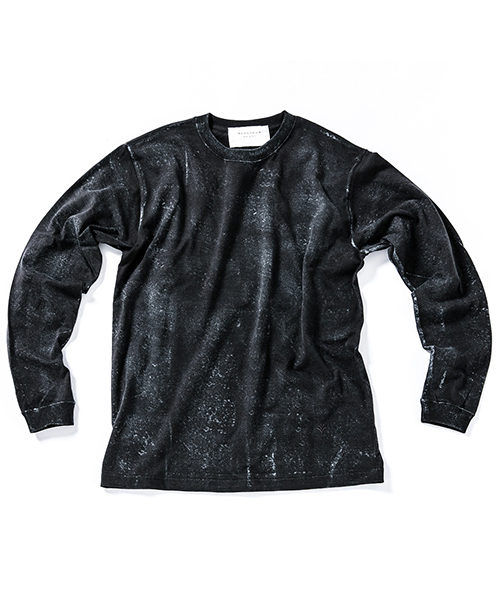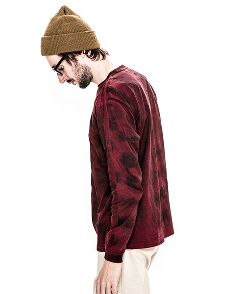 | spec | 首フライスは2本針縫製、丸胴に編み立てた身頃を使用したベーシックでスマートなシルエットのTシャツ。袖にはリブを配置。左脇にはブランド名であるACANTHUS(地中海地方産ハアザミ 属植物)の形をモチーフにしたアイコンを生地同色にて刺繍。1点1点職人の手作業によるムラ染めを施している為、同じ仕上がりの物は1つも無い特別仕様。 |