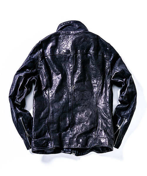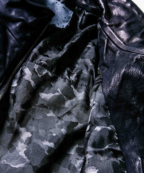 | spec | カーフという稀有な素材を大胆に製品染めした1着。スポーティなトラックJKTを重厚なカーフレザーの製品染めにて作製。裏地にはポリエステルの迷彩ジャガード生地を採用。ファスナーにはハードな製品染め加工に耐えうる高品質なYKK EXCELLAファスナーを採用。オイルをたっぷりと浸透させて製品染めを施す事で滑らかな質感を実現している。製品染めでしか表現できない色味と素材感、革の価値を十分に体感する事のできる1着。 |
