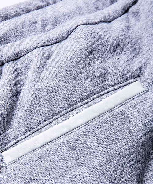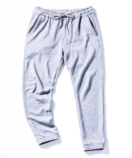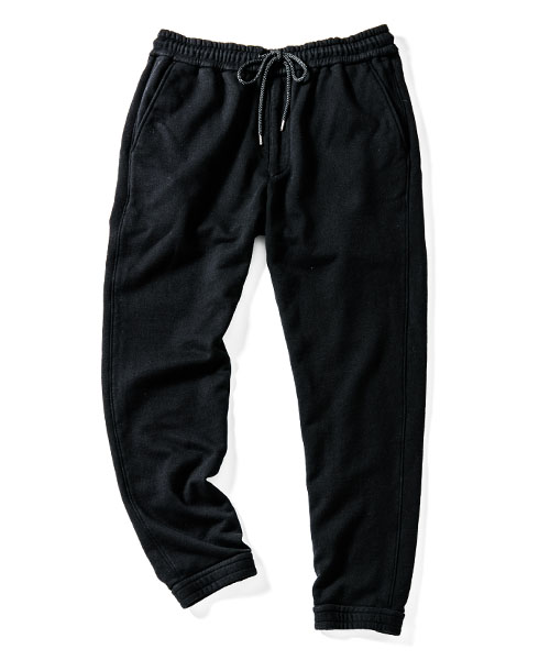 | spec | 裏毛生地を使用したスウェットパンツ。ウエストゴム仕様ながらも機能的なファスナー明き仕様となっている。裾はゴムリブ仕様。バックポケット口にはをレザーパーツを配置。ワンウォッシュ加工仕上げ。上質な裏毛生地と、綺麗なテーパードシルエットで仕上げた1本。縫製後ワンウォッシュ加工を施して仕上げている。 |