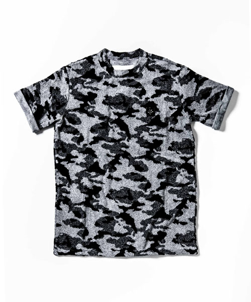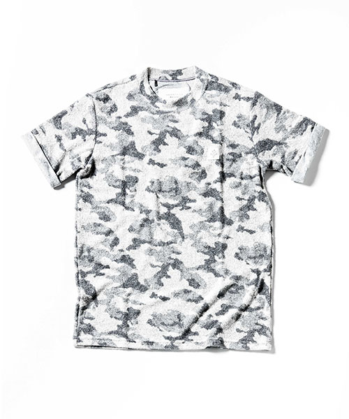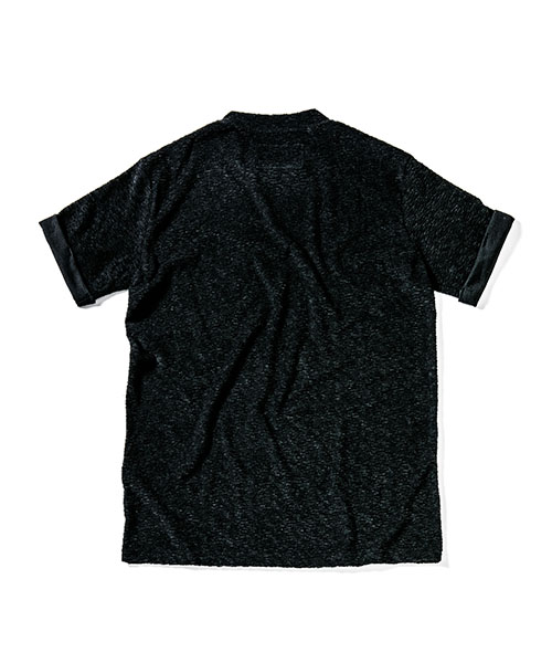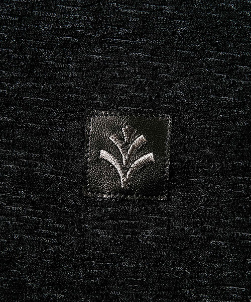 | spec | 着心地の良いパイル生地を使用したクルーネックTee。袖口は折り返し仕様。衿には同生地でリブ切り替え仕様。胸にはブランド名であるACANTHUS(地中海地方産ハアザミ 属植物)の形をモチーフにしたアイコン刺繍を施したレザーパッチを配置。 |
