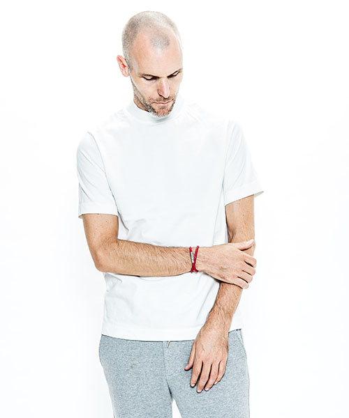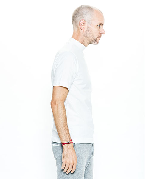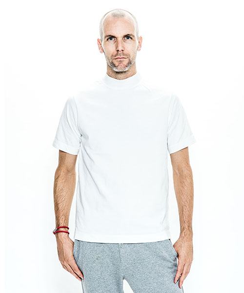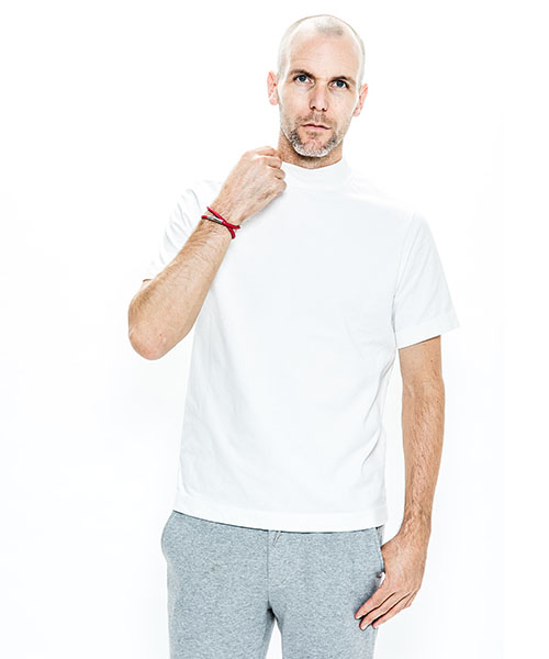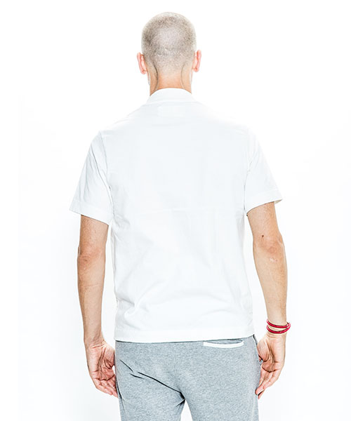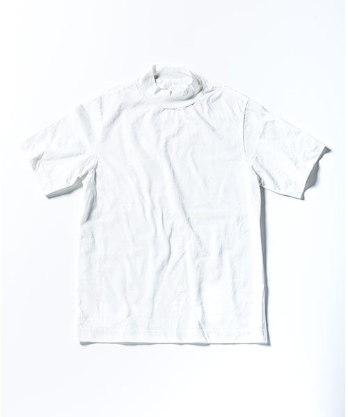 | spec | オリジナルパターンから作製したモックネックTeeシャツ。ゆとりを持った袖丈、幅を広めにとった袖口、裾のステッチ等全体的に上品な印象の仕上がり。衿は肌触りの良いフライス生地にて切り替えている。縫製後にワンウォッシュ加工にて仕上げている。 |