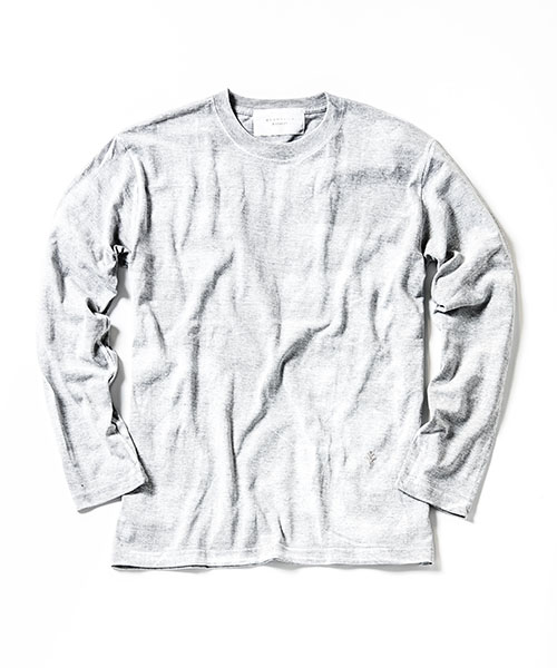 | spec | 首フライスは2本針縫製、丸胴に編み立てた身頃を使用したベーシックでスマートなシルエットのTシャツ。左脇にはブランド名であるACANTHUS(地中海地方産ハアザミ 属植物)の形をモチーフにしたアイコンを刺繍している。 |