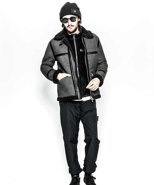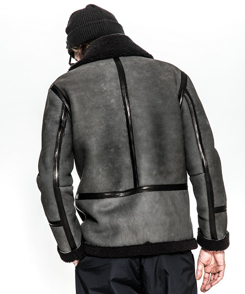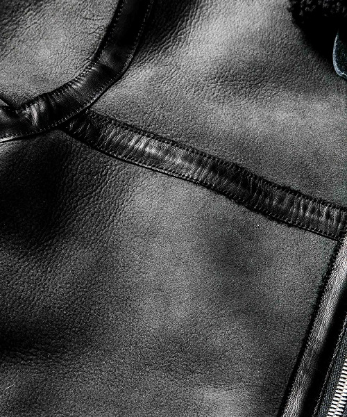 1930年代後半に登場したB-6 ムートンJKTをベースに作成。 ファスナーには高品質なYKK EXCELLA製ファスナーを使用。衿を閉じる為のレザーベルトを配置。レザーテープには上質なポニーレザーを使用。着心地の良い柔らかいムートン素材を使用し、限れた数量の素材を使用している為、着数限定生産となるムートンJKT。