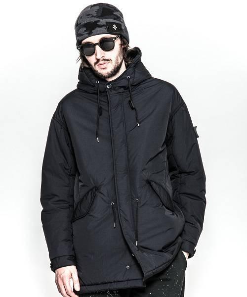 | spec | M-51タイプをベースとした、中綿入りのモッズコート。裏地には軽量感と、強度を備えたマイクロファイバー糸使用のポリエステル生地を使用。ファスナーには軽量感、メッキの高級感を持つYKK社のMATALUXEを使用。袖にはボタンにて取り外し可能のロゴ刺繍入りのレザーパッチを配置。 |