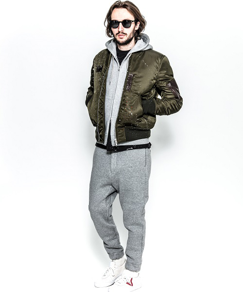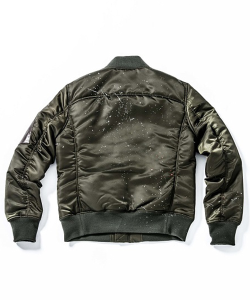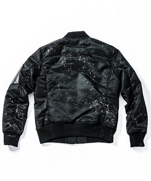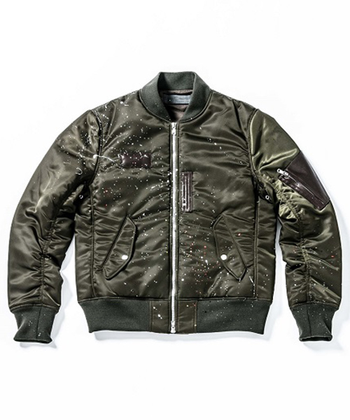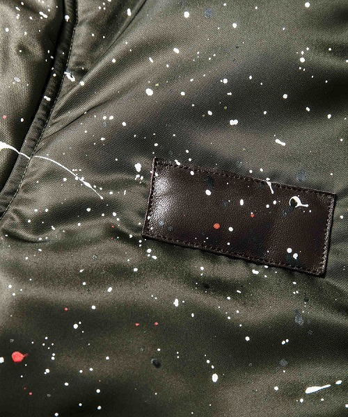 | spec | 1950年代初頭に、B-15型フライトジャケットの後継としてアメリカ空軍によって開発されたMA-1型フライトジャケットをベースに作製。身頃裏、袋布には起毛コットン、袖には肌滑りの良いキュプラ素材を使用。ファスナーには軽量感、メッキの高級感を持つYKK社のMATALUXEを使用。全体に厚めの中綿を挟み込む事によって保温性を高めている。フロント、左袖PKにはラムレザーを配置し、パッカリング縫製を施した袖仕様を採用しMA-1のディティールを再現。仕上げにブラックにはシルバー色、カーキにはマルチカラー色にて1点1点特別な表情となるハンドスプラッシュ加工を施している。 |