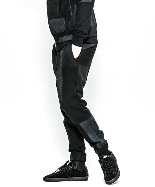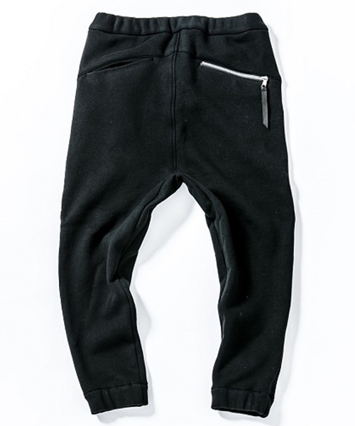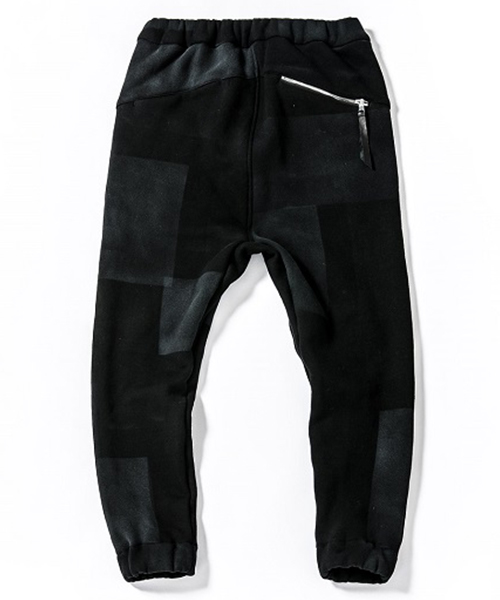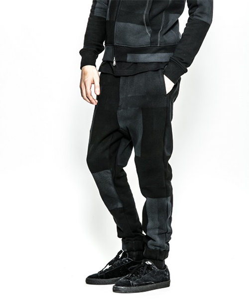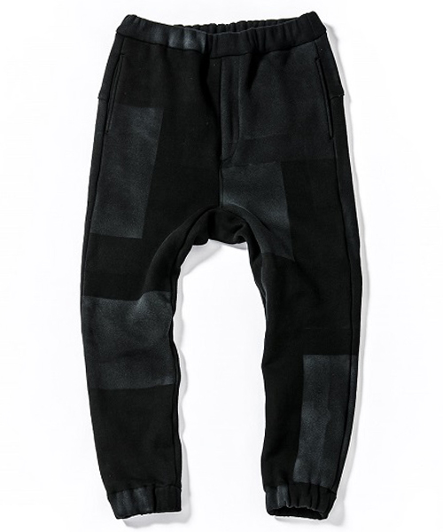 | spec | 股上深めのセミサルエルシルエットのイージーPT。後PKファスナーには軽量感、メッキの高級感を持つYKK社のMATALUXEを使用。引き手にレザーテープを追加。ウエストゴム仕様でスピンドルにて調節が可能。仕上げに手作業によるダメージ加工を施している。black patchwork色は特殊な手法によるプリントにて、1点1点特別なパッチワーク柄を表現している。 |