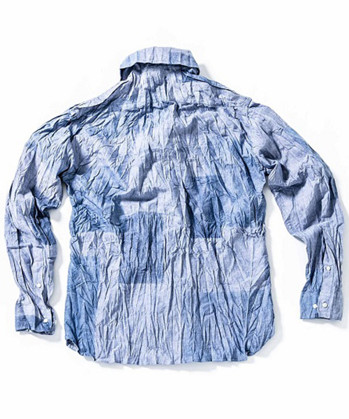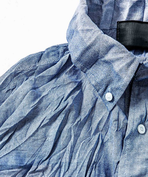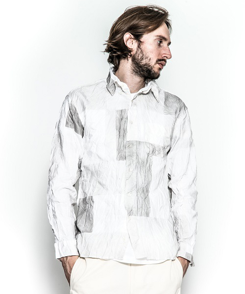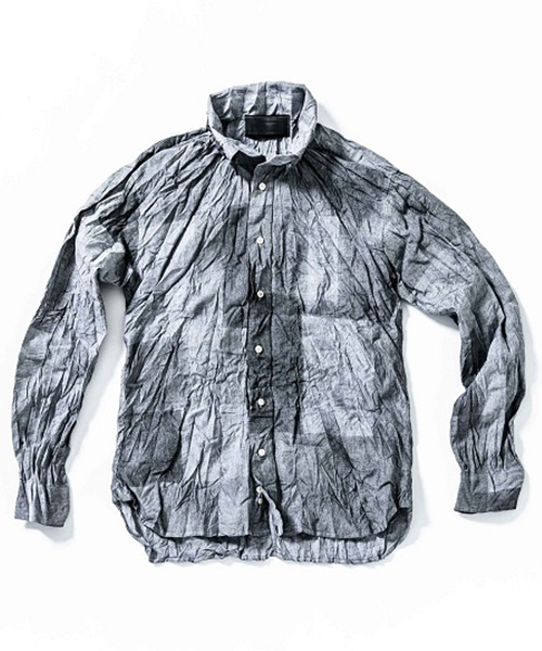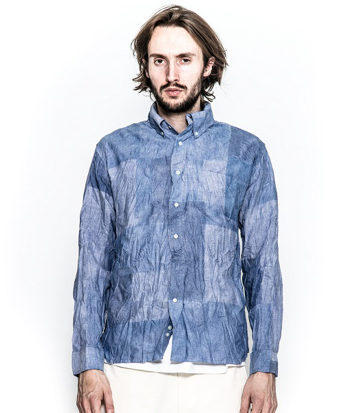 | spec | 両脇にガゼットを配置した、クラシックなB.D シャツ。縫製後、特殊な手法によるプリントにて、1点1点特別なパッチワーク柄を表現している。さらに製品洗い、シワ加工を施して表情に奥行きを追加。 |