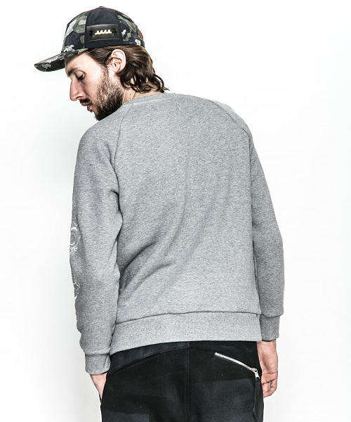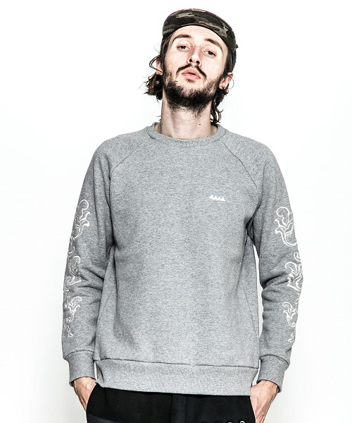 | spec | mutaとのコラボレーションコレクション。左胸にはmutaの新らしいアイコンロゴを刺繍にて配置。ブランド名であるACANTHUS(地中海地方産ハアザミ 属植物)の形をモチーフにしたデザインを袖パーツに刺繍。アームはラグランスリーブ。上質で程よい肉感の起毛裏毛を使用し着心地を追求。プルオーバータイプでリラックスして着用可能な1枚。 |