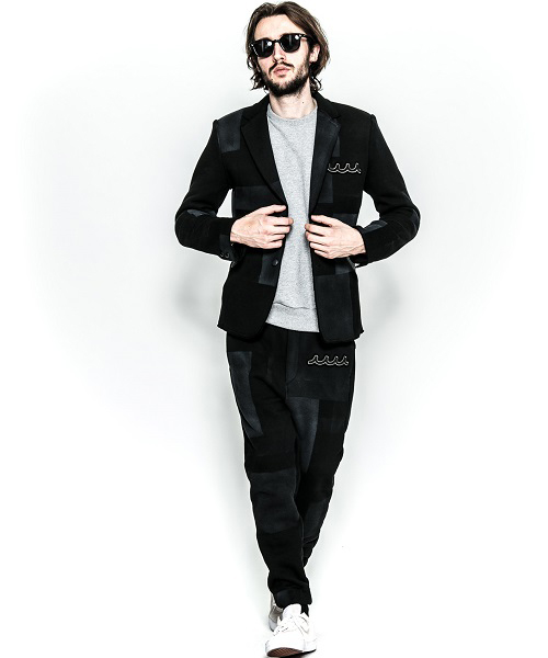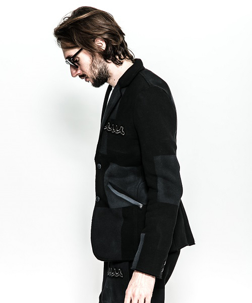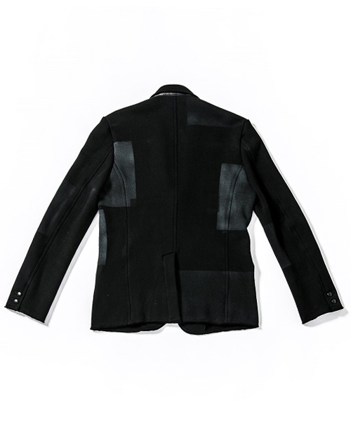 | spec | mutaとのコラボレーションコレクション。胸には表地同生地を使用した切りっぱなし仕様の、オリジナルmutaロゴワッペンを配置。2BテーラードJKT。釦にはオリジナルで作製したレザーくるみ釦を使用。取替え用として通常の釦も付属する。裏毛生地を生かしたカットオフディティールを採用。上衿裏、脇ポケット口にはラムレザーを配置。black patchwork色は特殊な手法によるプリントにて、1点1点特別なパッチワーク柄を表現している。 |