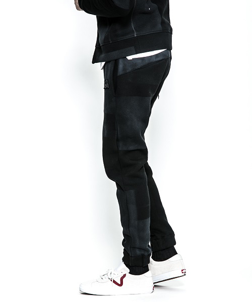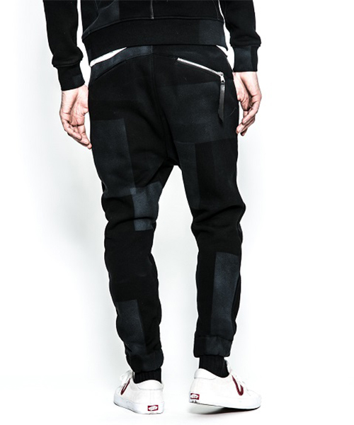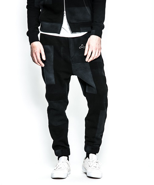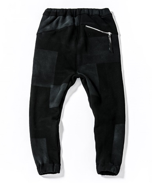 | spec | mutaとのコラボレーションコレクション。左前身には表地同生地を使用した切りっぱなし仕様の、オリジナルmutaロゴワッペンを配置。股上深めのセミサルエルシルエットのイージーPT。後PKファスナーには軽量感、メッキの高級感を持つYKK社のMATALUXEを使用。引き手にレザーテープを追加。ウエストゴム仕様でスピンドルにて調節が可能。仕上げに手作業によるダメージ加工を施している。black patchwork色は特殊な手法によるプリントにて、1点1点特別なパッチワーク柄を表現している。 |