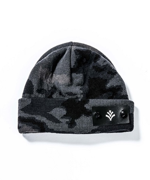 | spec | mutaとのコラボレーションコレクション。サイドにボタンにて取り外し可能なロゴ刺繍入りのレザーパッチを配置。ACANTHUSはシルバー刺繍、mutaはゴールド刺繍、両方のパッチが付属するので気分に合わせて取り替えが可能。クオリティの高い国内工場にて編み立て生産。糸には被り心地を重視したウール、ナイロン、アクリルプレンドの物を使用。ブラックはリブ編み仕上げ、迷彩はジャガード編みにて柄を表現している。 |