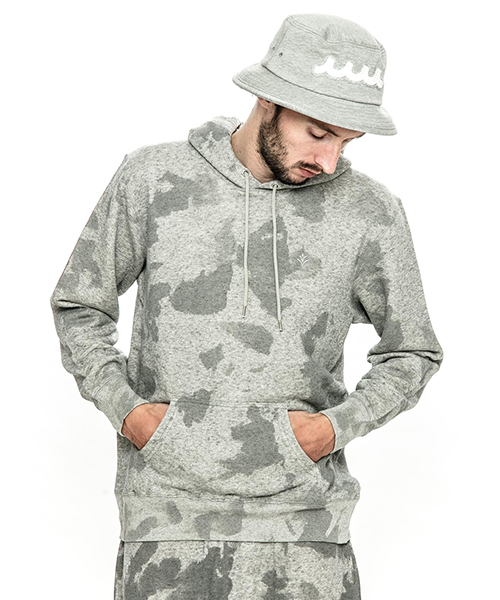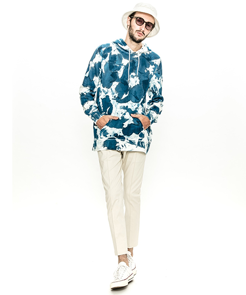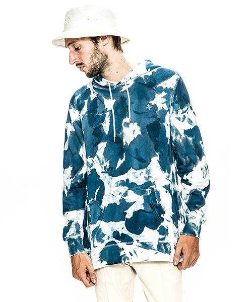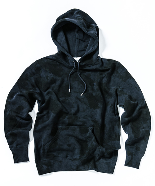 | spec | 全体にハンドダイ加工を施した裏毛パーカー。柔らかい素材感を生かしたリラックスしたサイズ感。フードはドローコードにて調節可能。左胸にはACANTHUS(地中海地方産ハアザミ 属植物)の形をモチーフにしたアイコンを刺繍している。手作業によるムラ染め絞り染めを施している為、1点1点表情の異なる特別な1枚となる。 |