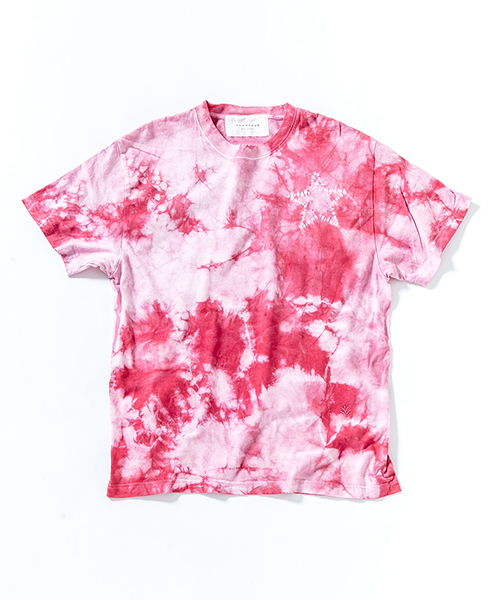 | spec | 首フライスは2本針縫製、丸胴に編み立てた身頃を使用したベーシックでスマートなシルエットのTシャツ。左脇にはブランド名であるACANTHUS(地中海地方産ハアザミ 属植物)の形をモチーフにしたアイコンを生地同色にて刺繍。左胸、後右肩には愛知有松地方で活動する職人による絞りにて☆柄を表現。手作業にてタイダイ染めを施している為、1点1点表情の異なる特別な1枚となる。 |