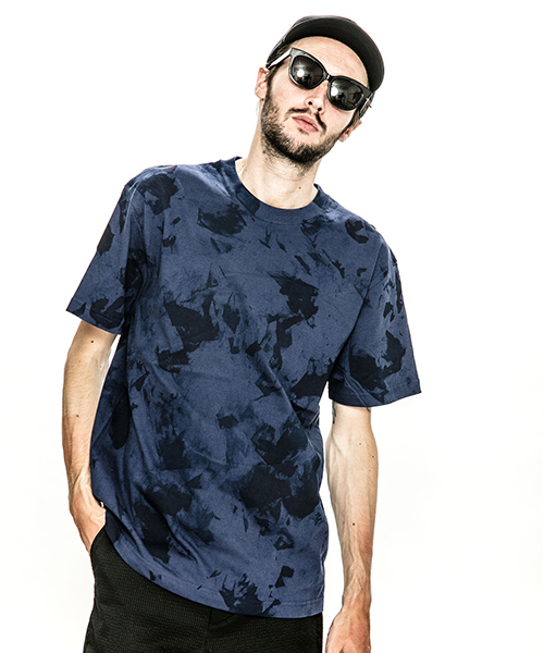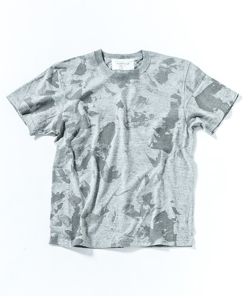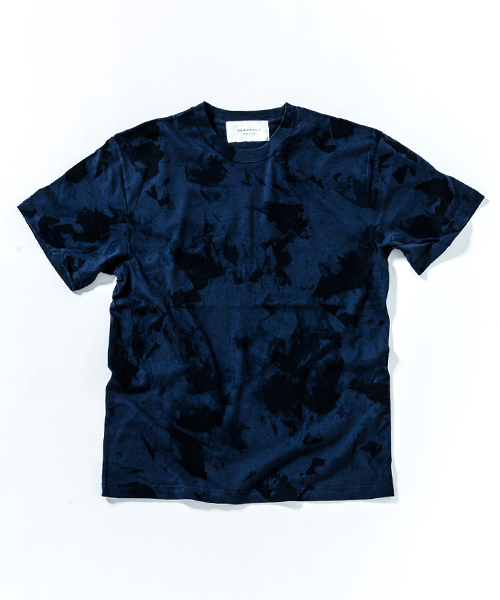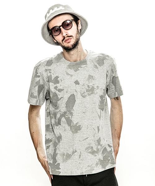 | spec | 首フライスは2本針縫製、丸胴に編み立てた身頃を使用したベーシックでスマートなシルエットのTシャツ。左脇にはブランド名であるACANTHUS(地中海地方産ハアザミ 属植物)の形をモチーフにしたアイコンを生地同色にて刺繍。手作業によるムラ染め絞り染めを施している為、1点1点表情の異なる特別な1枚となる。 |